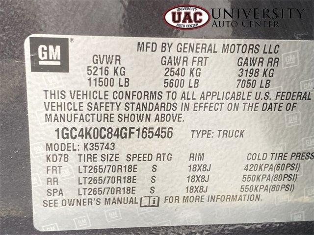- Tire, spare LT265/70R18E all-season, blackwall (Included and only available with (QWF) LT265/70R18E all-season tires or (QGM) LT265/70R18E all-terrain tires. Available to order when (ZW9) pick-up box delete is ordered.)